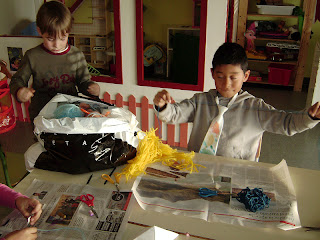 havien de preparar una gran desfilada de disfresses per als més petits però per fer-ho només podien utilitzar: paper de diàri, celo, ceres i llana!!!