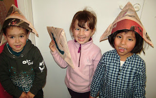 els més petits van fer uns súper barrets de paper de diari que van decorar amb ceres!