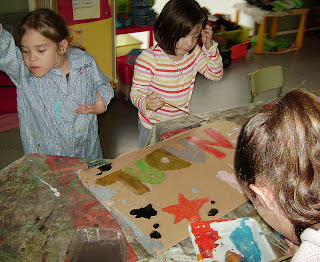 Mica en mica, van anar omplint les seves safates amb trossets de diferents tons del color que havien triat i amb això van cobrir tot el seu arbre de cartró, que al principi estava molt avorrit!
