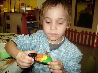 L’altre dia vaig proposar als nens i nenes fer una Castanyera per al Planeta de manualitats. Petits i grans es van posar mans a la obra en una activitat conjunta. Els grans; dibuixaven i pintaven i els petits pintaven i enganxaven paperets de colors…