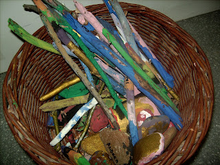 A dins hi havien: pinyes, aglans, fulles de tots colors, palets, fruïts secs, pedretes… Amb tantes formes diferents podíem fer un munt de coses!